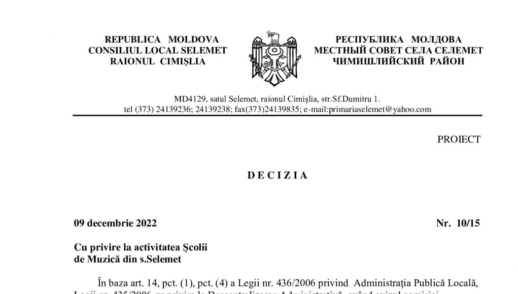 Acasă Anunțuri Proiect de Decizie Nr. 10/15 din 09...Proiect de Decizie Nr. 10/15 din 09 decembrie 2022 Cu privire la activitatea Şcolii de Muzică din s.Selemet24 noiembrie 20224DISTRIBUIȚI Facebook Twitter 1 of 1